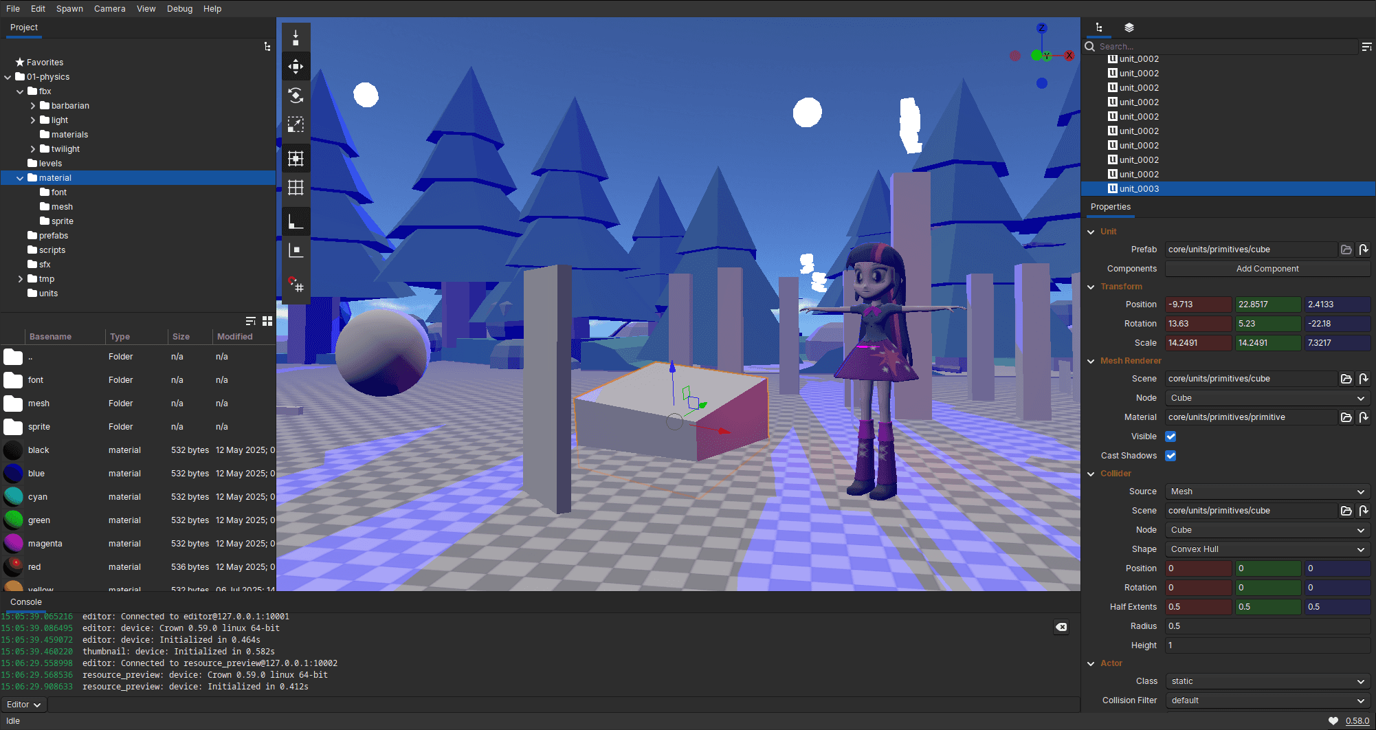Crown v0.58 is out with a new fog simulation component, improved resource importing experience, greatly optimized mesh compilation times and the usual load of fixes.